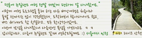 남섬 더니든 웨스트 코스트 6박 7일 남섬을 제대로 한바퀴 돌 수 있는 자유 배낭여행. 더니든에서 출발하는 이상적인 여행프로그램입니다.