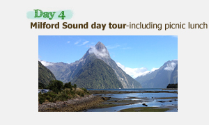 Day 4 - Queenstown to Queenstown (via Milford Sound day tour) - Queenstown - Milford Sound - Queenstown - Milford Sound day tour (English guide) - scenic cruise - Accommodation: Queenstown - youth hostel