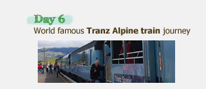 Day 6 - Franz Josef to Christchurch (via Greymouth) - Franz Josef - Greymouth(Tranz Alpine train) - Christchurch - World famous Tranz Alpine train journey - Accommodation: Christchurch - youth hostel